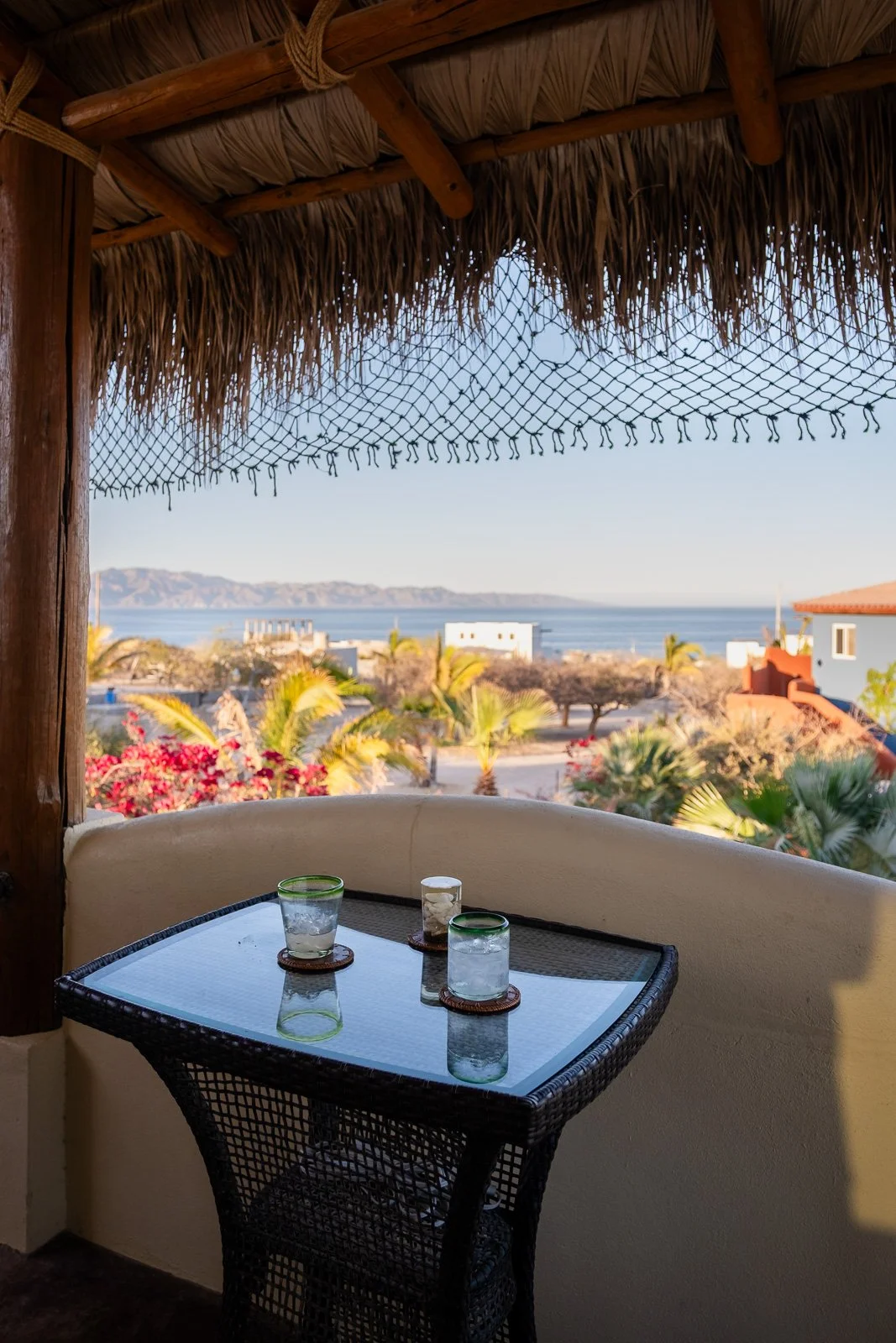 Private deluxe suite with king size bed, spacious bathroom, kitchenette and living area with queen sofa bed. Beautiful panoramic views of La Ventana Bay and Cerralvo island.