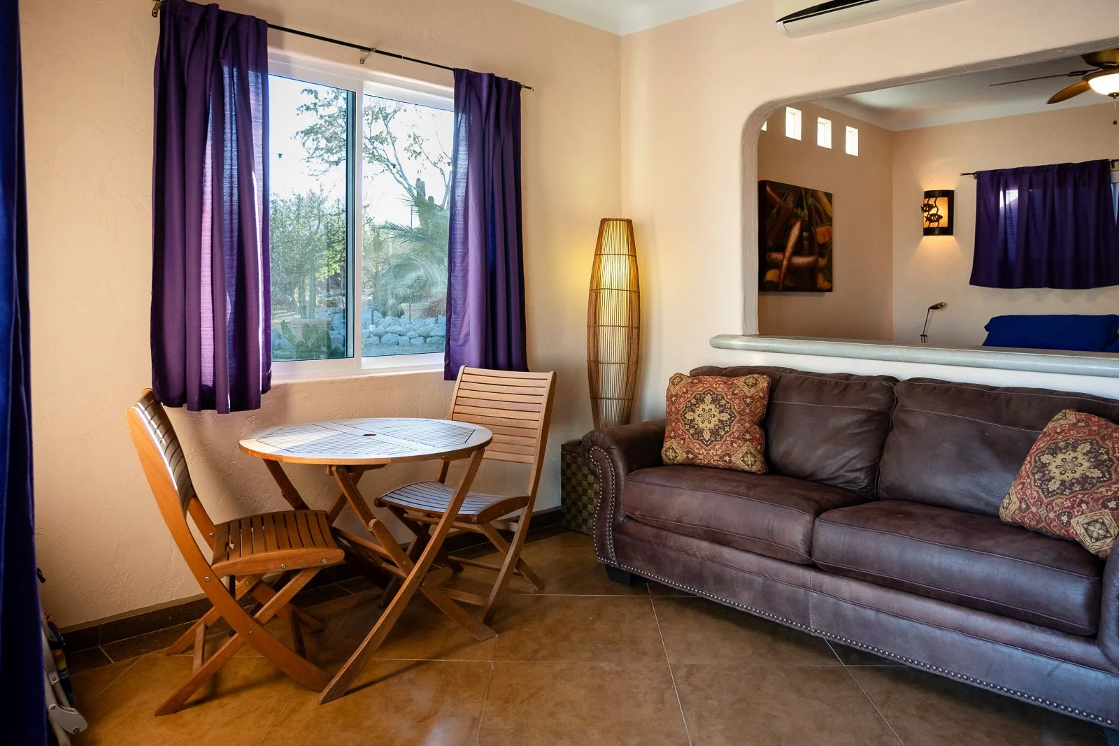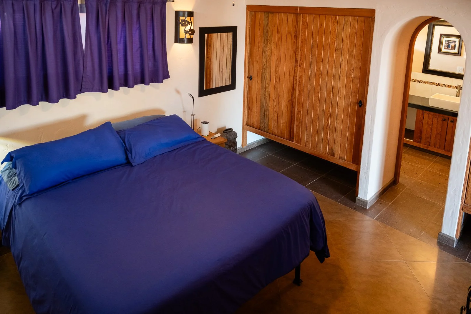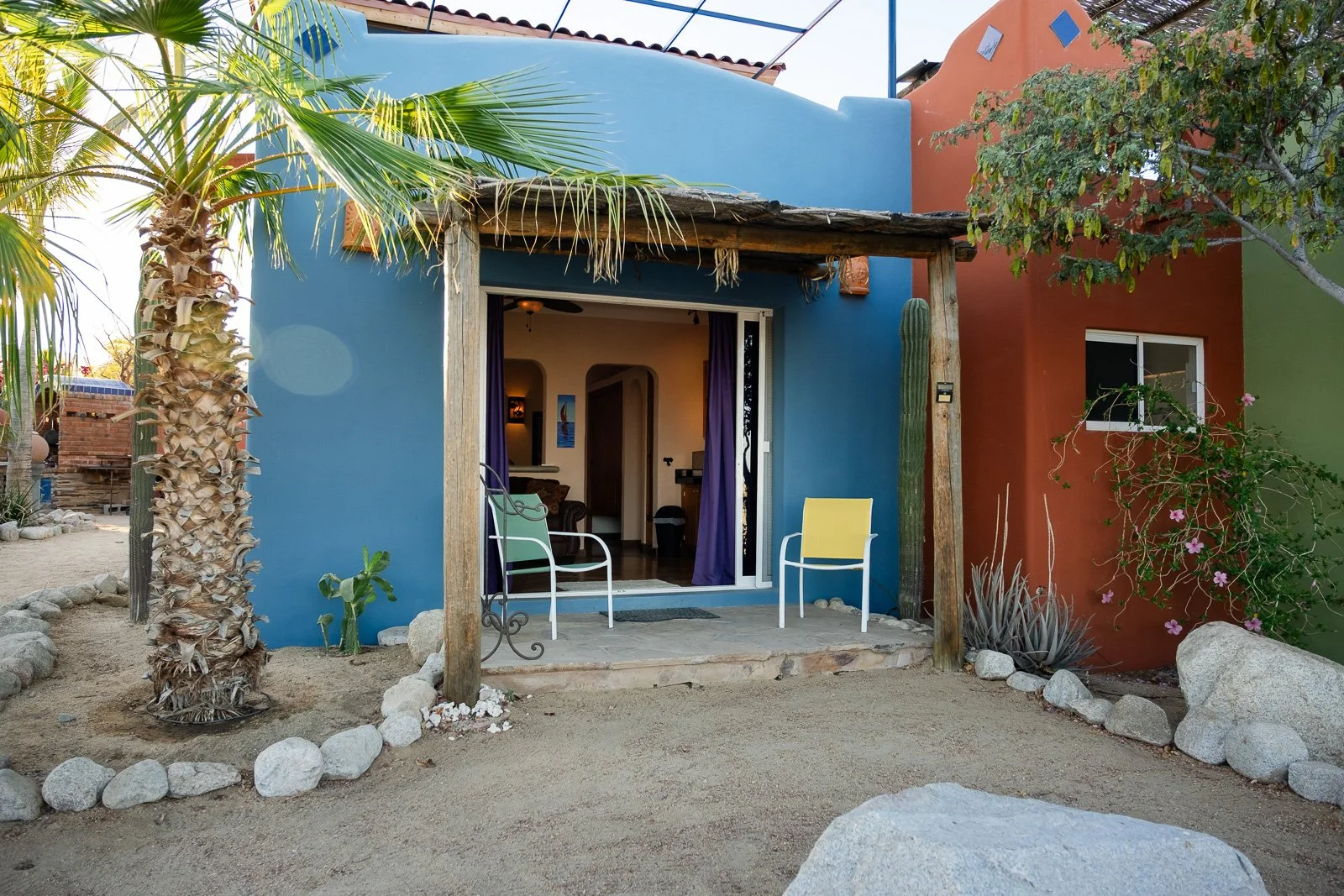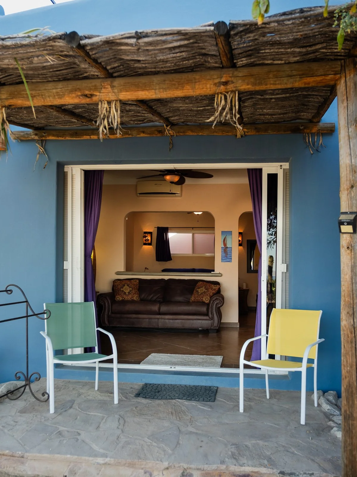 Private deluxe suite with beautiful panoramic views of La Ventana Bay and Cerralvo island. Enjoy our shared outdoor kitchen space and wood fired pizza oven with family and friends. Play bocce ball at our court and relax in the natural rock spa.