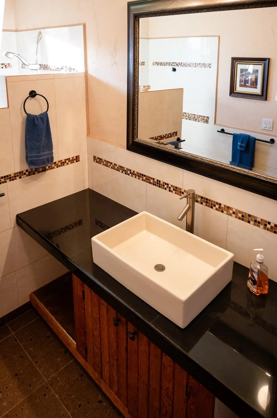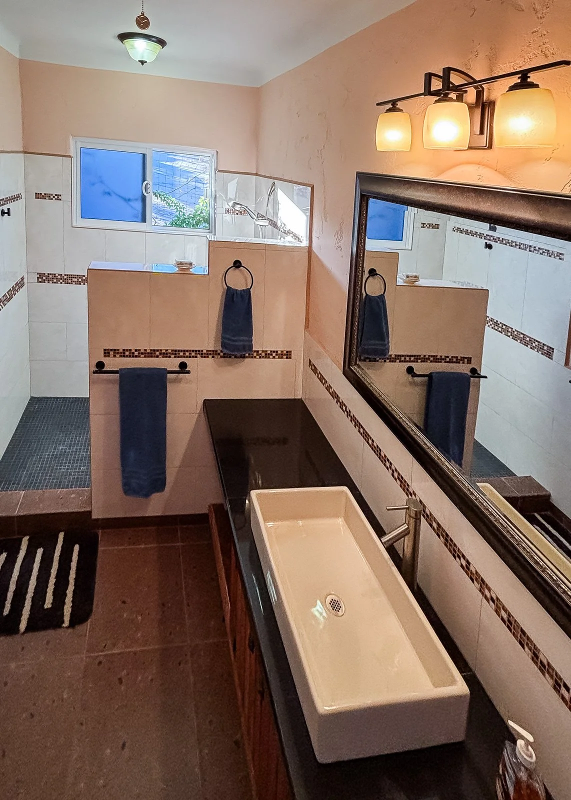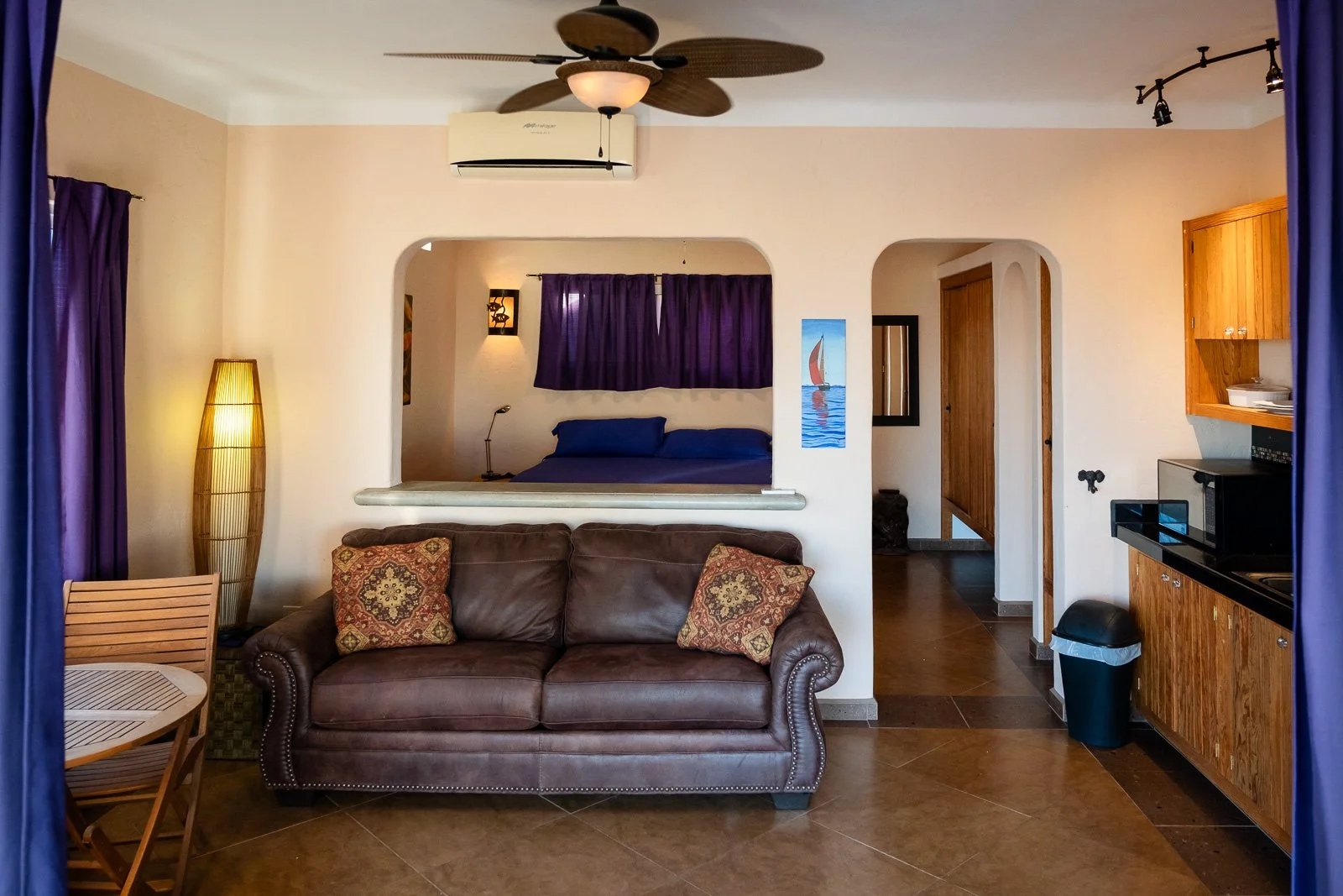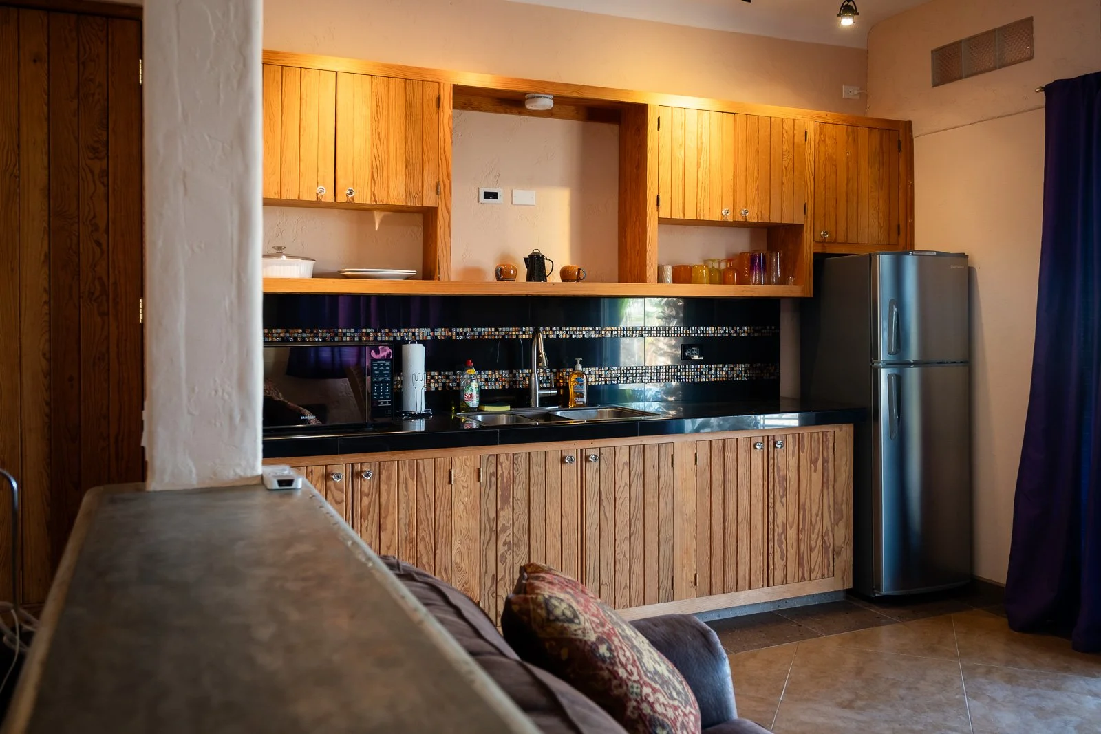 Private deluxe suite with beautiful panoramic views of La Ventana Bay and Cerralvo island. Enjoy our shared outdoor kitchen space and wood fired pizza oven with family and friends. Play bocce ball at our court and relax in the natural rock spa.