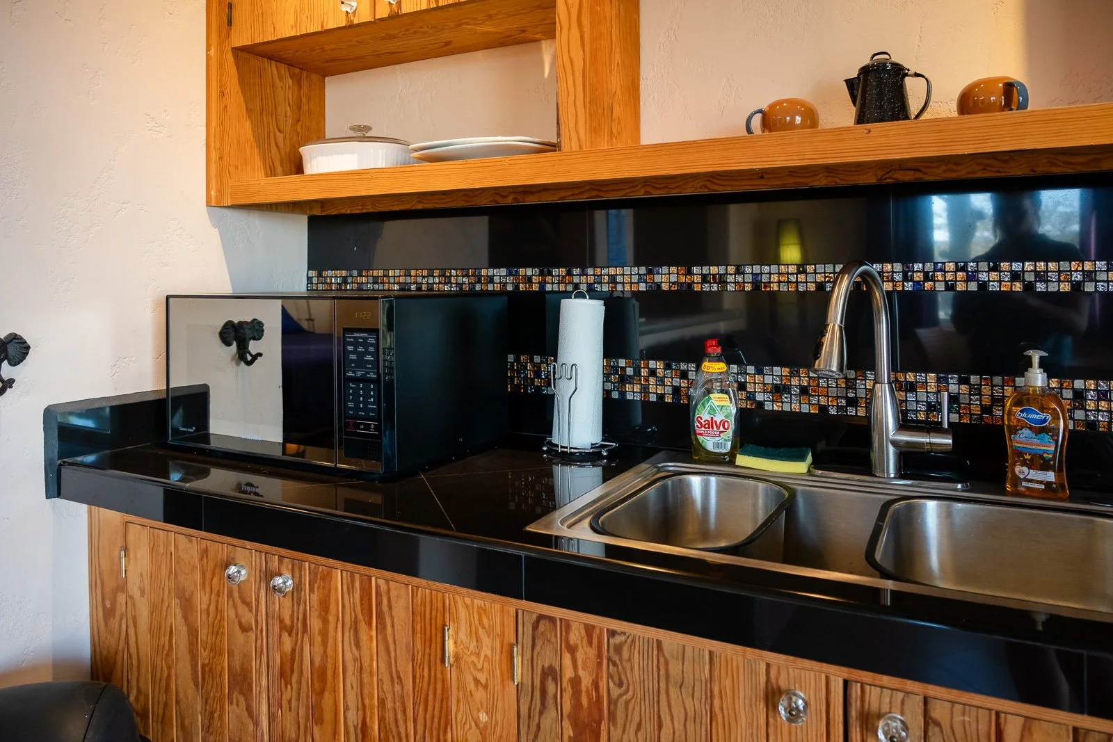 Kitchenette: fully stocked, microwave, coffee maker, toaster, mini fridge, cooking essentials (salt, pepper, oil, coffee)