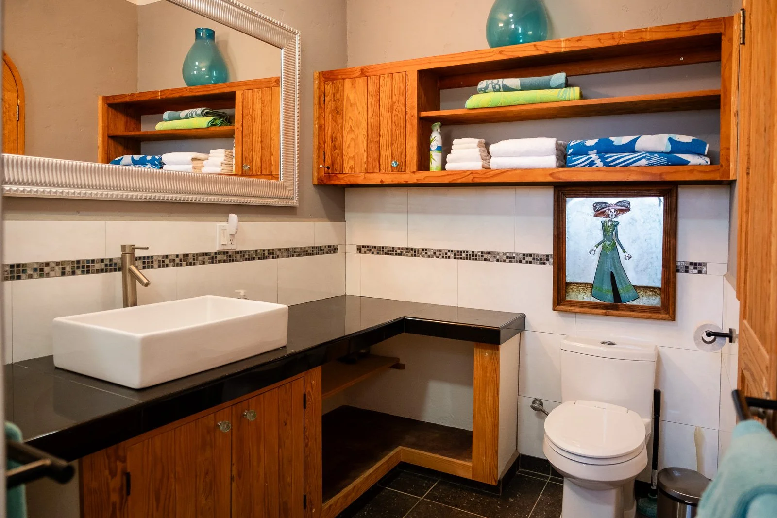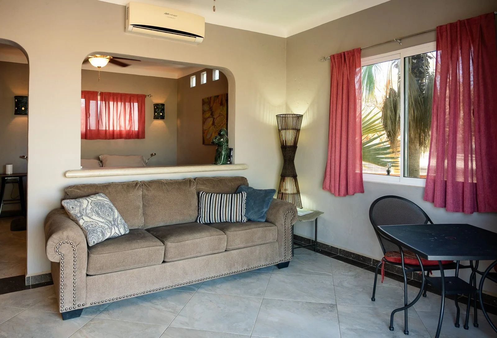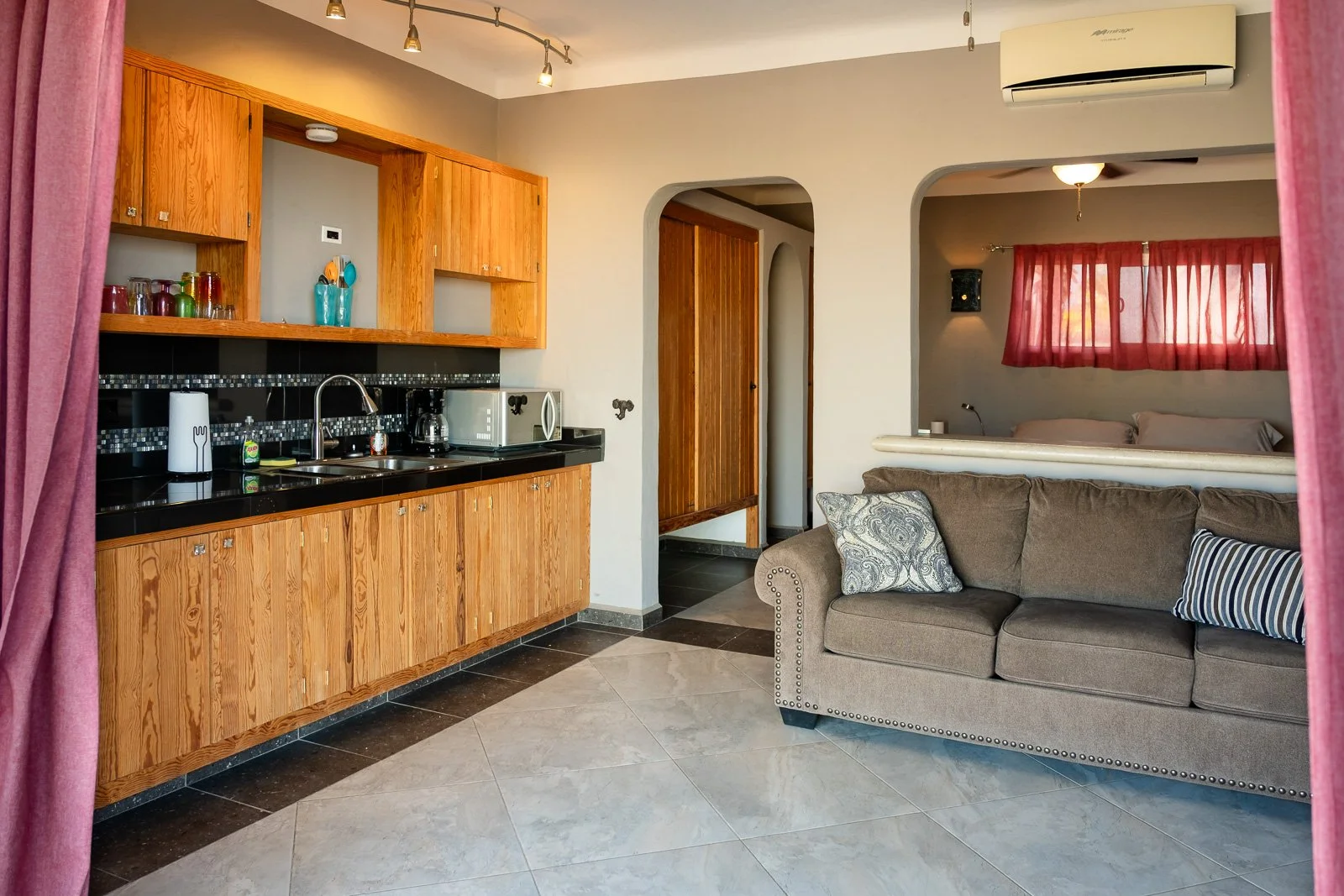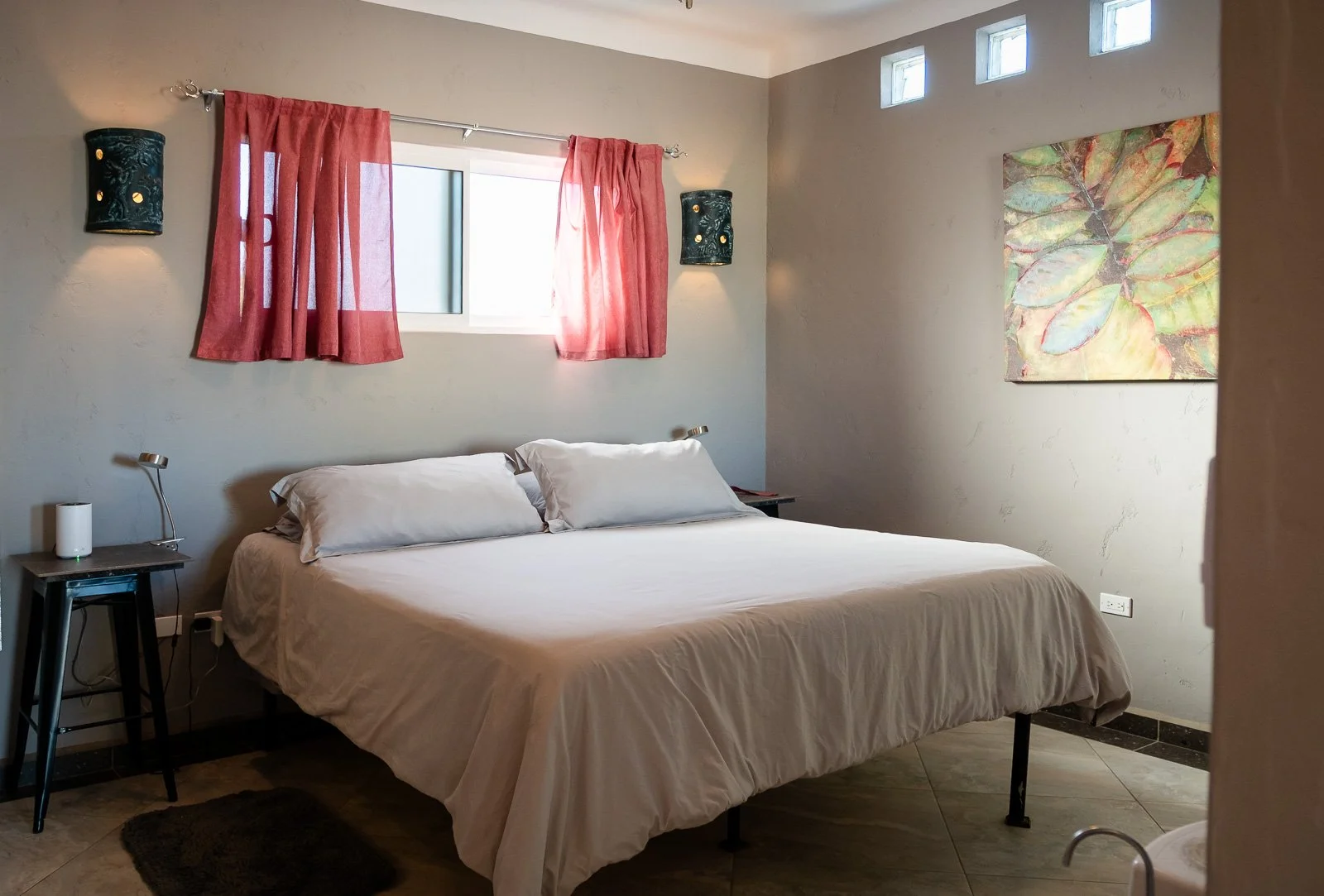 Private deluxe suite with beautiful panoramic views of La Ventana Bay and Cerralvo island. Enjoy our shared outdoor kitchen space and wood fired pizza oven with family and friends. Play bocce ball at our court and relax in the natural rock spa.