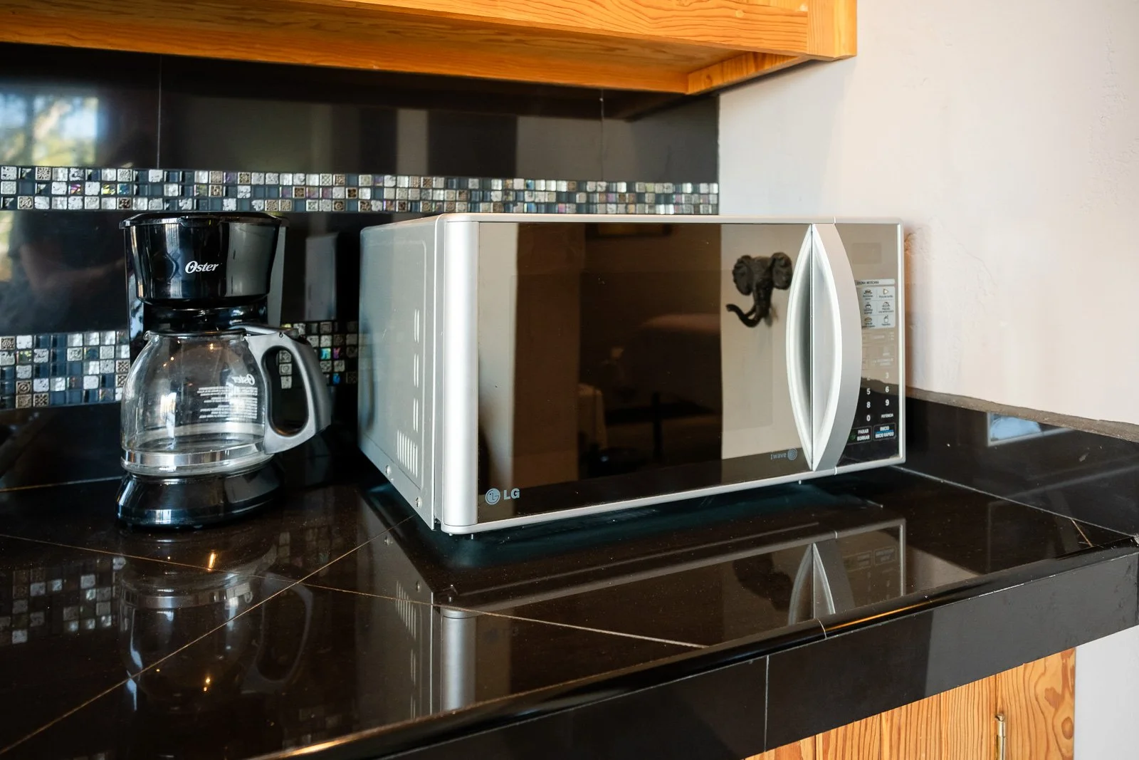 Kitchenette: fully stocked, microwave, coffee maker, toaster, mini fridge, cooking essentials (salt, pepper, oil, coffee)